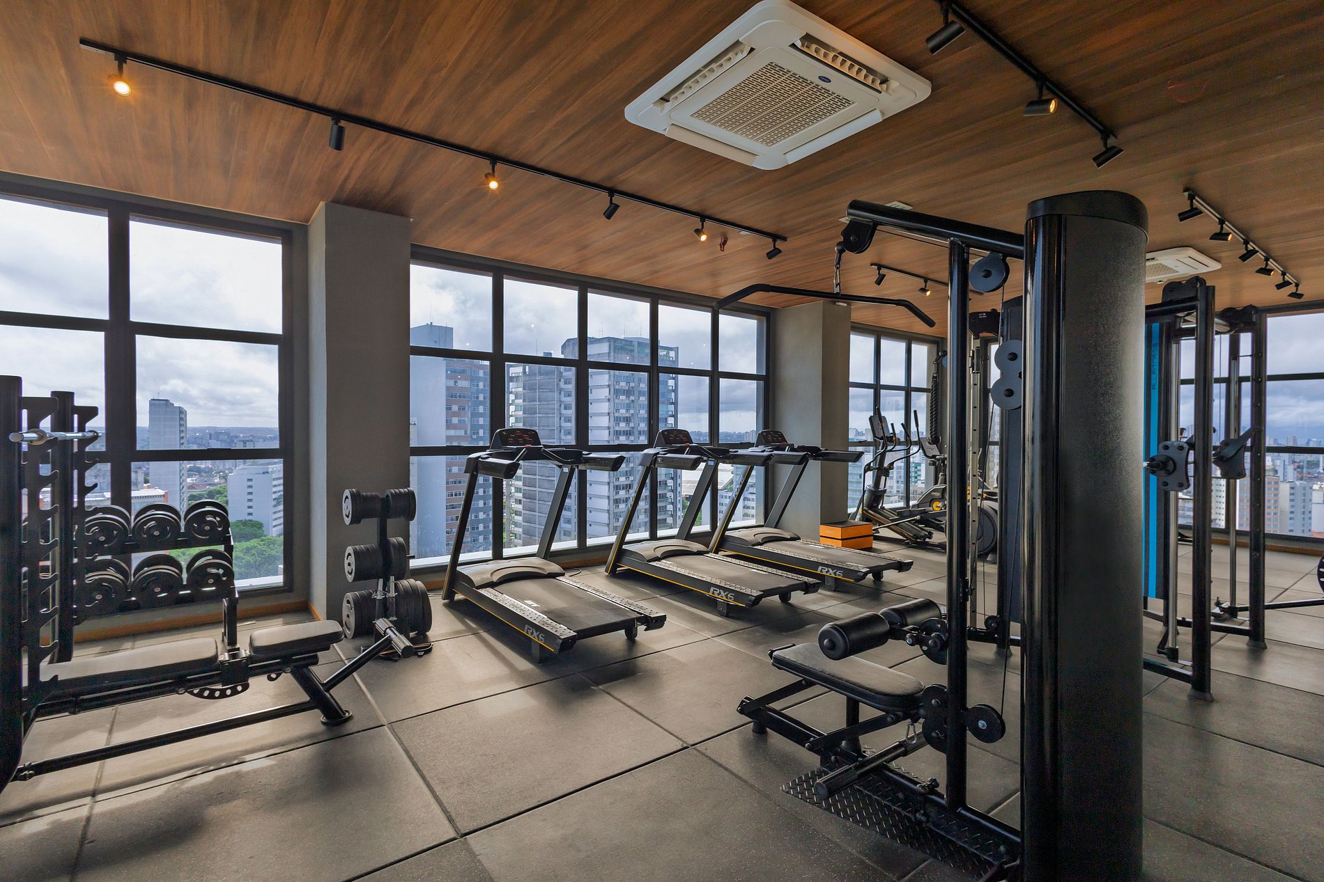 Academia: Espaço fitness moderno e bem equipado.