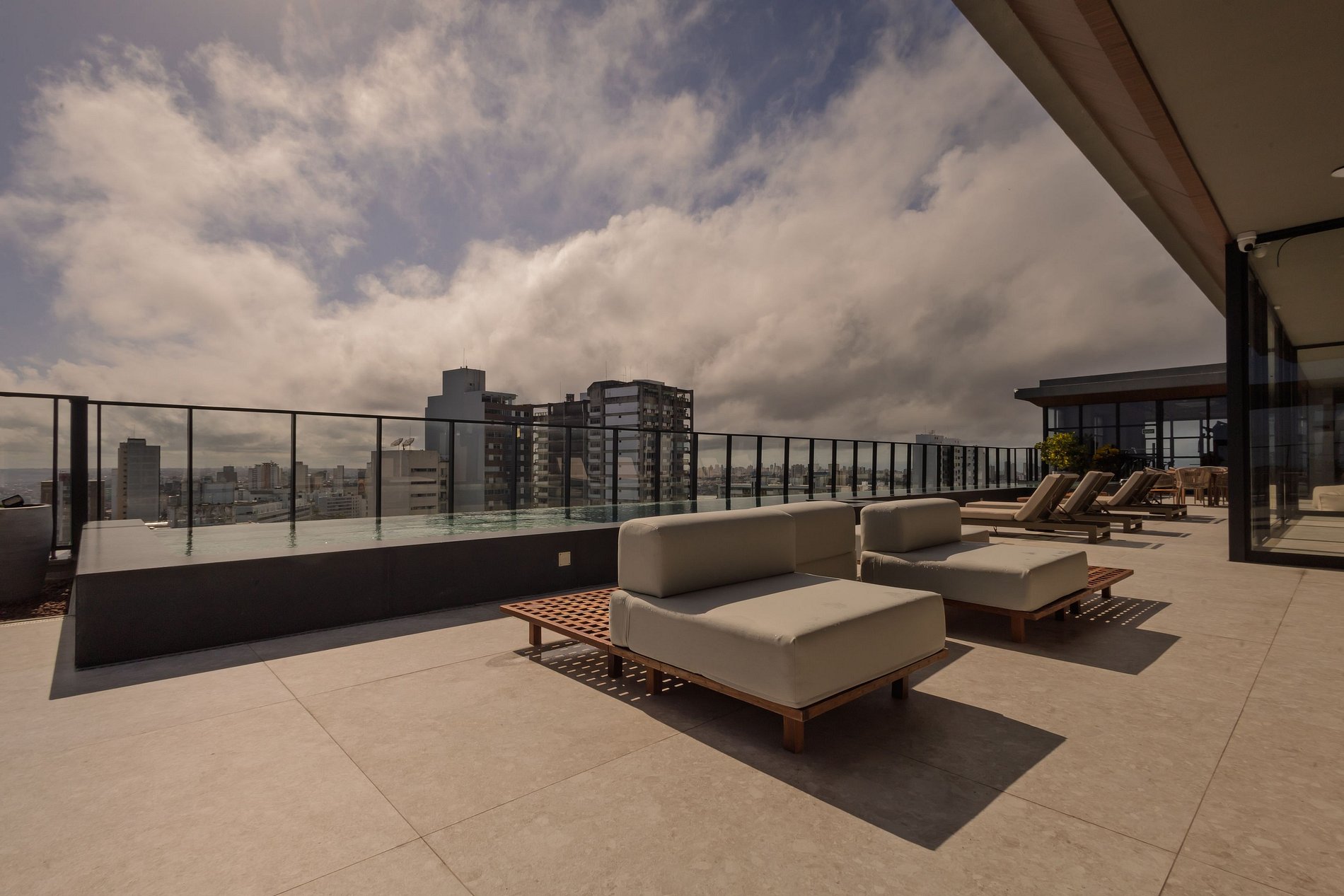 Design Moderno: Arquitetura que harmoniza elementos locais e cosmopolitas, aproveitando as características naturais do entorno e promovendo integração com o bairro.